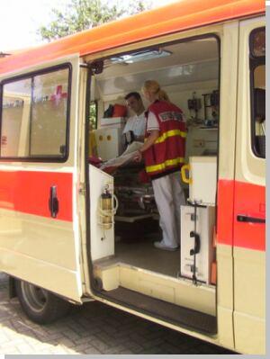 Fahrzeug sind mindestens 2 Sanitäter erforderlich.